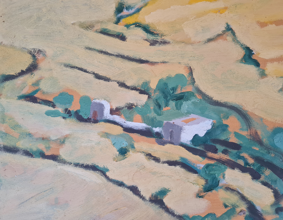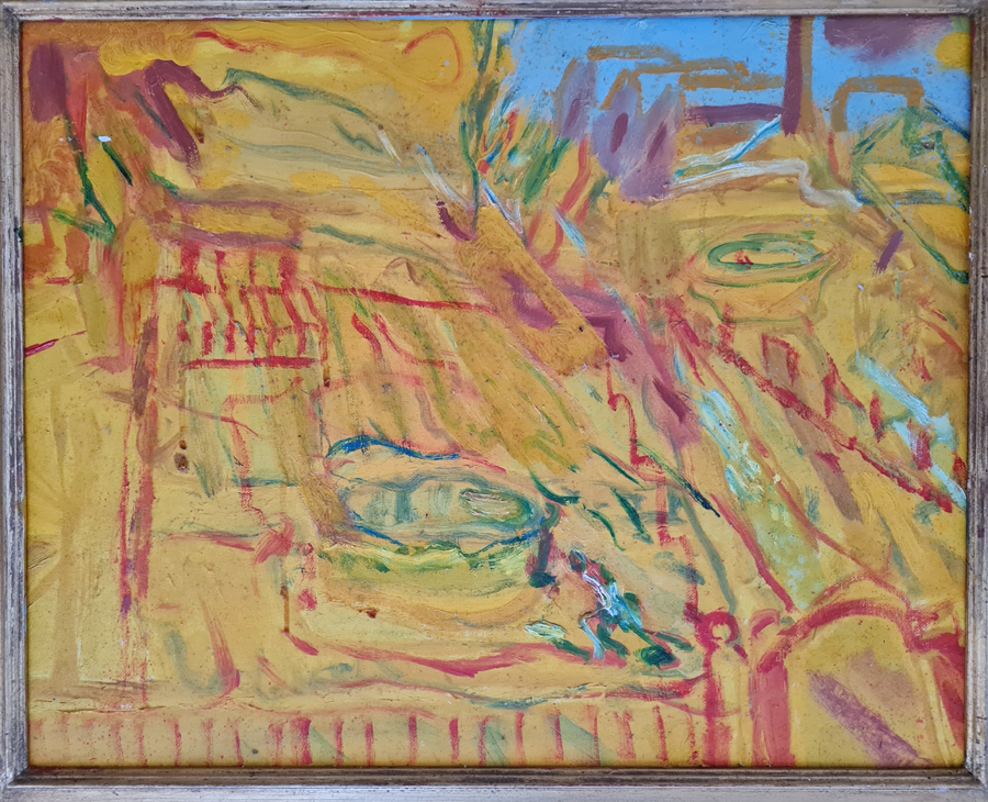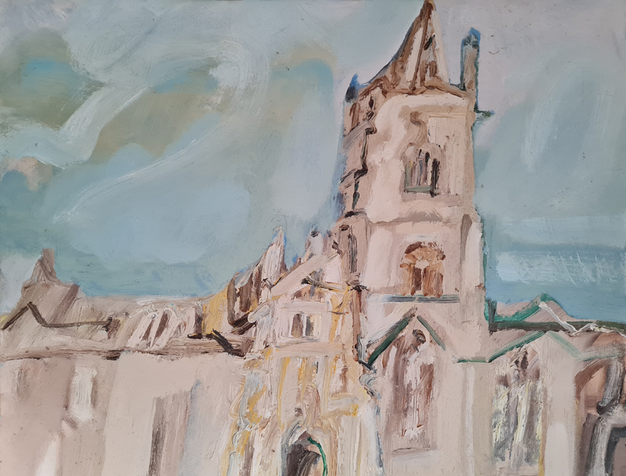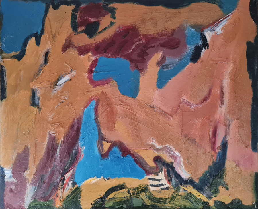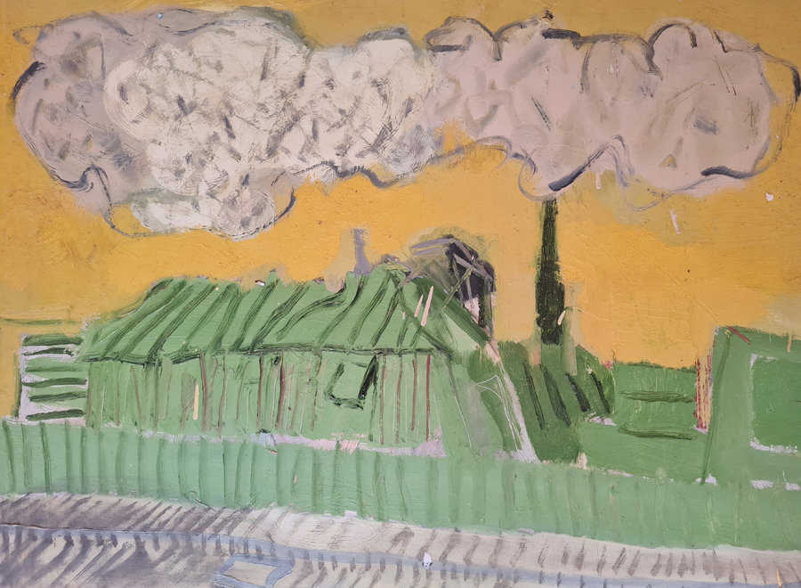 From the lighthouse, Dungeness, 2008. Oil and biro on card. 6in. x 18½in. ●