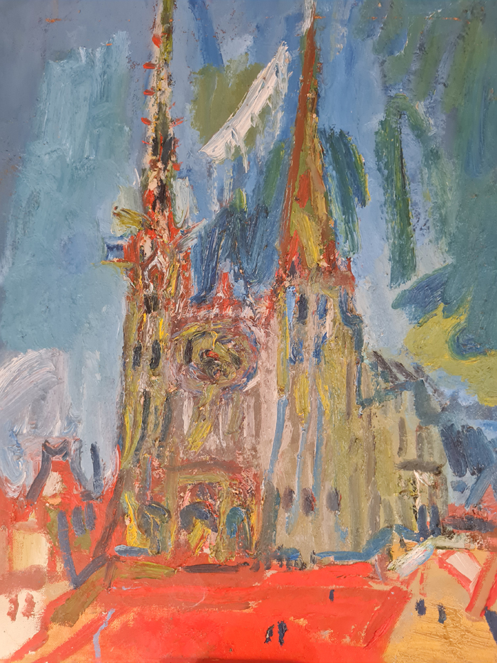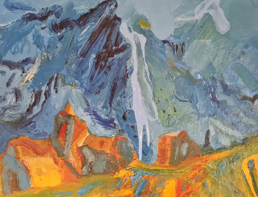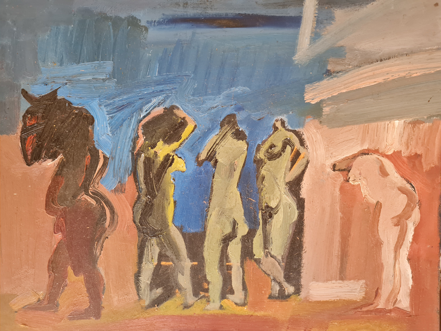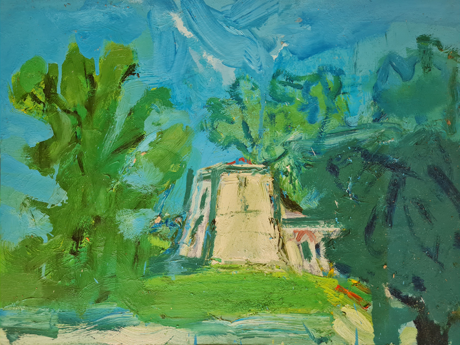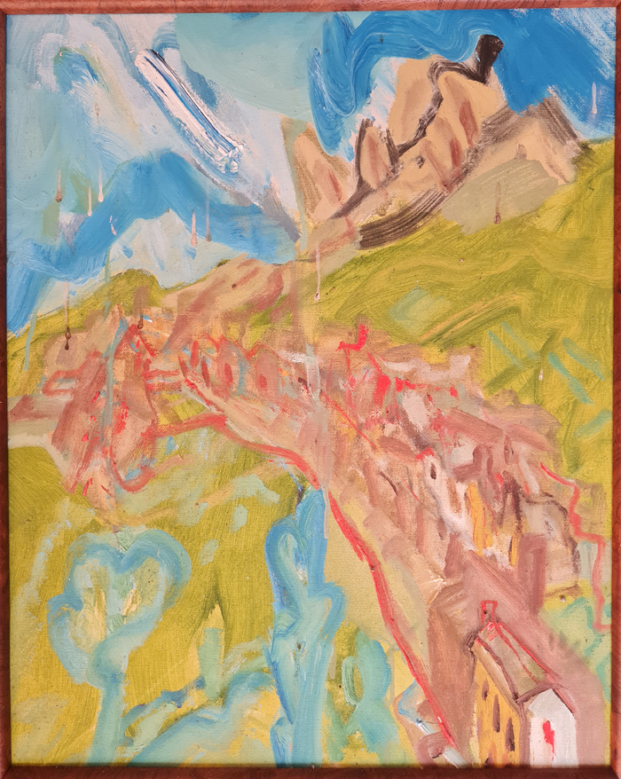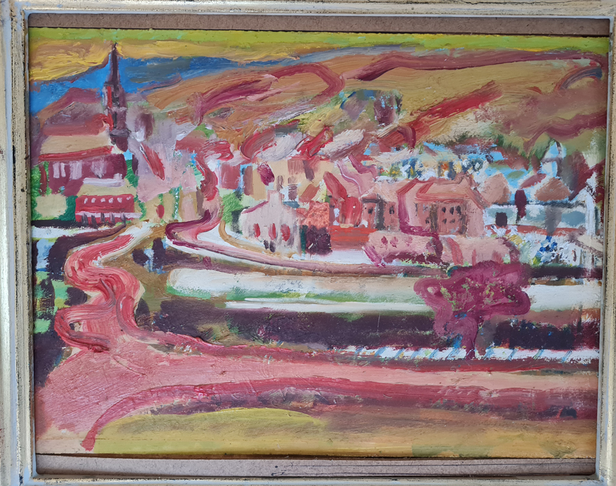 From the lighthouse, Dungeness, 2008. Oil and biro on card. 6in. x 18½in. ●